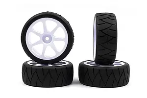 Rush 1.9" Radial 28X Touring Car Tyres on White 7 Spoke Rims - Glued Wheels 2Pcs