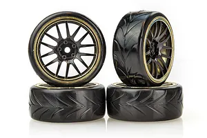 Vision RC 1.9" V-Pattern Drift Tyres on Spoke Black Rims - Glued Wheels 4Pcs