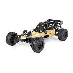 For years, the Rovan Baja has been a favourite among 1/5 scale petrol buggy fans, and this V2 Sport version takes it to another level. Rovan enhanced the best features, giving the V2 a drivetrain that's 25mm wider, symmetrical steering as standard, upgraded aluminium shocks, and more robust suspension arms for an improved driving experience. The power plant is a beefy 32cc 2-stroke engine, paired with a sport-tuned exhaust for that unmistakable petrol RC sound and performance. It looks the part too, with an updated roll cage, V2 Dirt Buster wheels, and a sleek black aluminium chassis.
