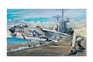 This 1/72 scale kit from Academy is a detailed replica of the F-8E variant. The model features accurately detailed panel lines and rivets, a precisely detailed cockpit and landing gear, and the option to assemble the distinctive variable-incidence wing and air brake in the open or closed position. Various weaponry is included, along with decals for two U.S. Navy squadrons: VF-162 "The Hunters" and VF-103 "Sluggers".