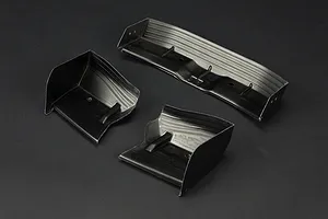 Includes rear wing and left and right front wing elements - Provided clear to allow you to customize the look of your vehicle - Precisely machined mounting holes for fast and easy fit to your model - Strong and durable polycarbonate material - Molded in cut lines for fine aero balance adjustment