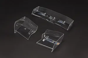 Includes rear wing and left and right front wing elements - Provided pre-painted in stealth black - Precisely machined mounting holes for fast and easy fit to your model - Strong and durable polycarbonate material - Molded-in cut lines for fine aero balance adjustment