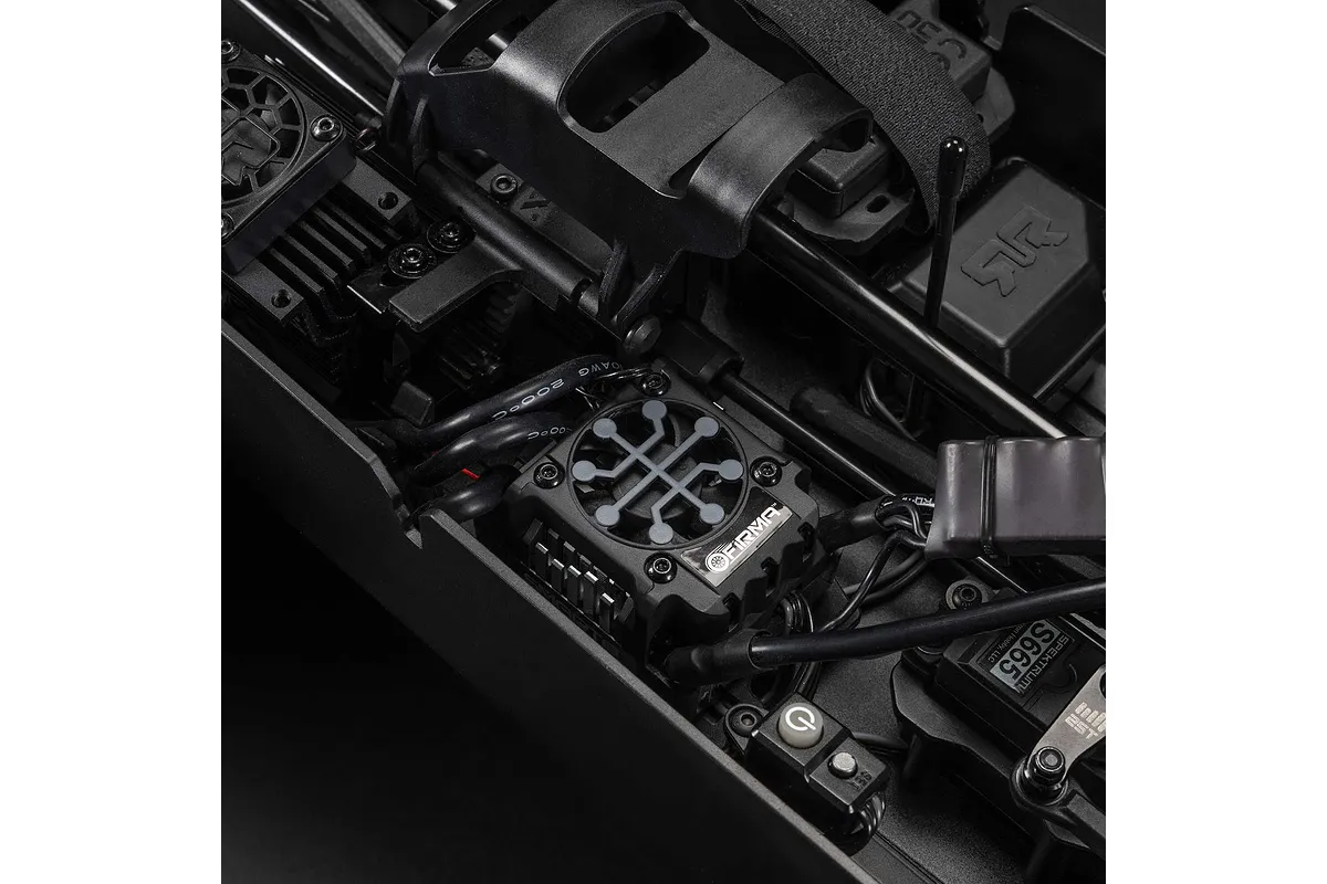 This RC features a potent 6S-capable brushless power system, comprising a highly efficient Spektrum Firma™ 2050Kv brushless motor that's meticulously paired with an upgraded Spektrum Firma 150A Smart V2 waterproof ESC, complete with IC5® connectors (also compatible with EC5™ connectors). Besides its capacity for Smart telemetry, the ESC showcases a refreshed appearance, enhanced power delivery, and an improved overall driving experience, delivering even more punch and precision.