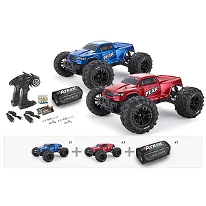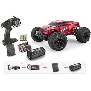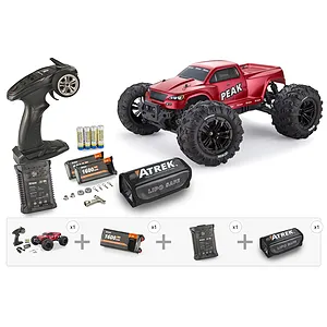 Introducing the Atrek Peak, the 1/10 RC Monster Truck that's all about fast, tough, and easy 4WD fun! This is a true Ready-to-Run (RTR) package, which means everything you need is in the box. Atrek has included a powerful 1600mAh 2S (7.4V) LiPo battery for a solid 20 minutes of run time, a simple-to-use USB charger, and even the AA batteries for the controller. Just charge it up and GO!