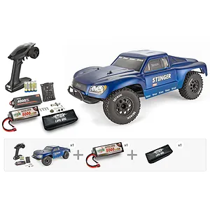 Introducing the new Atrek Stinger Pro RC Short Course Truck! This is a truly Ready-to-Run (RTR) combo that comes with everything you need, straight out of the box. Included is a powerful 2S (7.4V) LiPo battery, a fast balance charger for rapid charging, and even the AA batteries for the controller. The Stinger Pro is the go-to short course truck to get into the exciting world of RC. Just charge and GO!