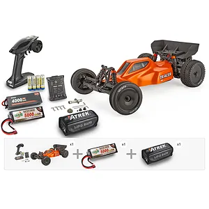 Introducing the new Atrek Tracer Pro Brushless RC Buggy, a truly Ready-to-Run (RTR) combo that comes with everything you need, straight out of the box. Included is a powerful 4000mAh LiPo battery, a fast balance charger for rapid charging, and even the AA batteries for the controller. The Tracer Pro is the go-to buggy to get into the exciting world of RC. Just charge and GO!