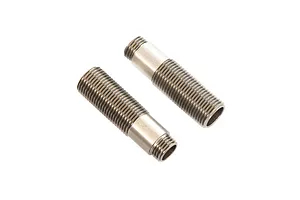 - Fully rebuildable, oil-filled shocks include clear anodized, threaded shock bodies, coilover springs, and an emulsion-style cap with screw for easier rebuilds