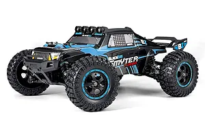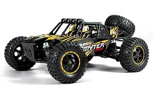 Prepare for high-speed desert action with the BlackZon Smyter DT Turbo, a 1/12 scale electric RC truck built for off-road excitement. This ready-to-run vehicle is packed with features, taking the Smyter platform and injecting it with a potent 3S-capable brushless system. This delivers thrilling acceleration and serious speed, leaving brushed trucks in the dust. Its rugged construction, 4WD drivetrain, and heavy-duty metal drivetrain parts are designed to withstand the punishment of all-out bashing, providing excellent traction on rough ground.