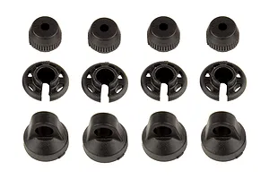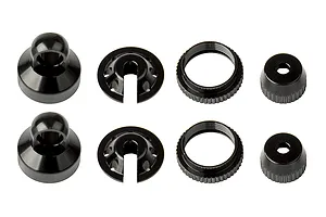 - Threaded aluminium shock bodies with plastic collars and bleeder caps for easy tuning and consistent performance