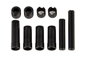 The durable plastic shocks feature threaded bodies and mini springs for a scale appearance and lighter weight. These shocks provide smooth damping and are easily adjustable, with bleeder screws for convenient maintenance.