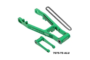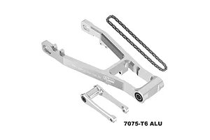 The swingarm is precision CNC-machined from high-tensile strength 7075 aluminium for incredible rigidity and durability and features a vibrant anodised finish for a custom look. This all-inclusive kit is a complete, bolt-on solution, coming with the required longer pull rod and chain. For any Promoto rider looking to add serious high-speed stability and improve acceleration control, this genuine GPM Racing product is a must-have upgrade. acceleration control, this genuine GPM Racing product is a must-have upgrade.