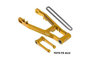 A complete bolt-on kit including the extended swingarm, longer pull rod, and longer chain