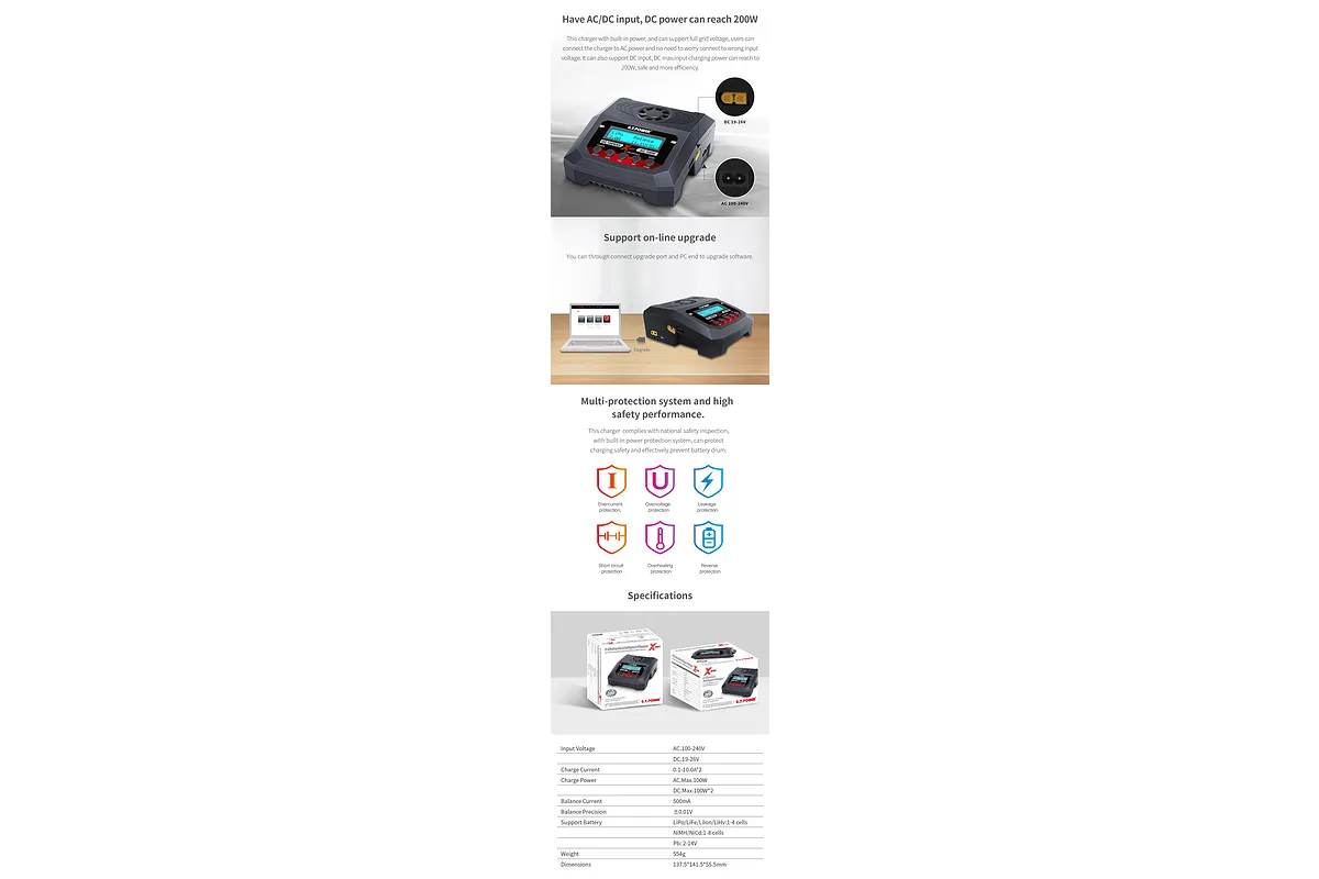 - The output ports on this Smart Charger are XT60 - to use other battery connectors you will need an adapter