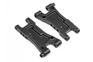 The rear hub features a vertical ball stud adjustment, enabling effortless rear roll centre customisation. Adjusting the ball stud height with optional spacers directly influences rear-end traction as the car navigates corners. Additionally, the suspension arm offers three distinct shock mounting holes for convenient shock angle fine-tuning.