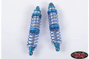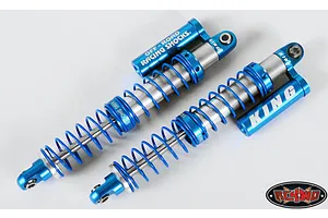 These Dual Spring Shocks are officially Licensed from King Shocks. The machined billet aluminium shocks are completely rebuildable and feature blue powder-coated springs, laser etched shock caps and sleeves with the famous King logo! Dual internal o-rings help seal in the oil providing consistent shock dampening when blasting through the rough stuff. "One up" your buddies with these awesome RC4WD Aluminium King shocks today!