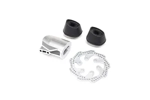 The servo saver's stiff circular springs, captured by bearing-mounted composite plates, provide consistency in steering with enough give to protect the servo. But that's not all. It also drastically improves the bike's performance when setting down from wheelies, landing from jumps, power sliding through a turn, and pushing the front tyre over a rut. It gives so the bike stays up.