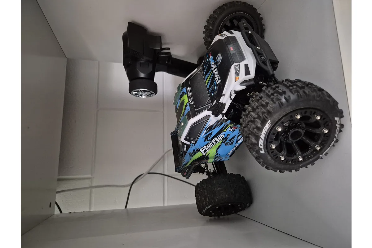 Installed these on the front of my son's HSP 1/10 Grampus after we cracked the OEM rims doing some jumps. Almost the same dimensions as the OEM fronts, but far grippier and they take a decent hit.