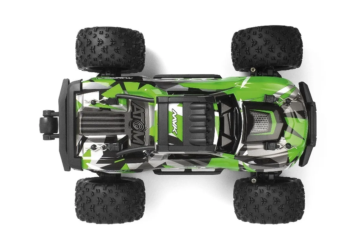 The Maverick Atom is a 1/18 scale 4WD electric monster truck that's big on fun and features. This compact monster truck delivers the excitement of its larger counterparts in a size that fits in the palm of your hand. The Atom is built for durability with a tough drivetrain, reinforced body, and splashproof electronics.