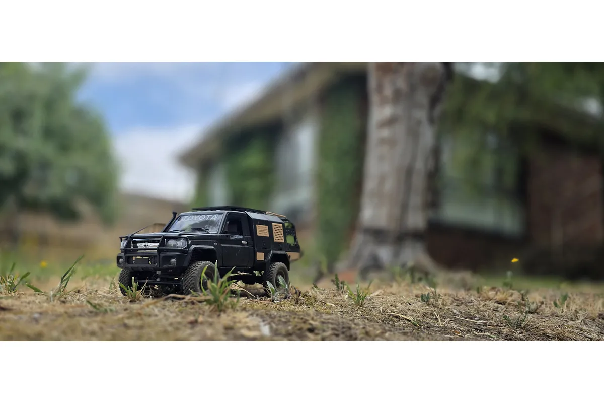 One of the best parts about this LC79 is the full light kit. It has adjustable warm white headlights, indicators, and even brake lights, making it perfect for night-time adventures. The bonnet actually opens up so you can swap out the battery quickly and adds yet another layer of incredible scale detail. Finally, the tough 4WD system uses a mix of 4-link suspension and steel plates to help you climb over any terrrain.