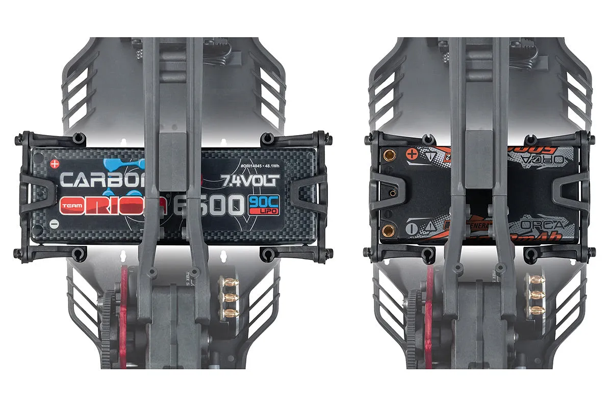 The RMX 2.5' versatile battery mount accommodates both long and short batteries, providing you with the flexibility to choose the power source that best suits your needs. This eliminates the limitations of traditional battery compartments, allowing you to customise your drift setup for maximum performance and convenience.