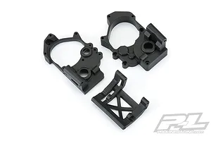 There are so many other awesome features that make Pro-Line's Performance Transmission a must-have. The motor mounts to a 3mm thick Aluminum Motor Plate that has been blue anodized with a laser-etched P-L logo and acts as a huge heat sink to keep your motor running cool. High-quality Ball Bearings are used throughout the Transmission and the Differential spins on huge 10mm x 16mm x 5mm Ball Bearings for incredible load capability. The Toe Block is molded into the case halves for added strength. The Hardened Steel Outdrive Shafts will accept the stock axles, as well as any aftermarket CVD's or driveshafts that you might already have for your vehicle.