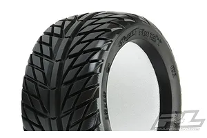 This is a pair of pre-mounted Pro-Line Street Fighter LP 2.8" Tyres. Looking for the ultimate street tire? Then check out Pro-Line's Street Fighter LP (Low Profile) 2.8" Tire perfect for your Rustler® 2wd or Rustler® 4x4! Based on the latest in high performance on-road tire technology, the Street Fighter LP 2.8" tire has the perfect balance of G force enhancement and style that will keep your truck turning heads!