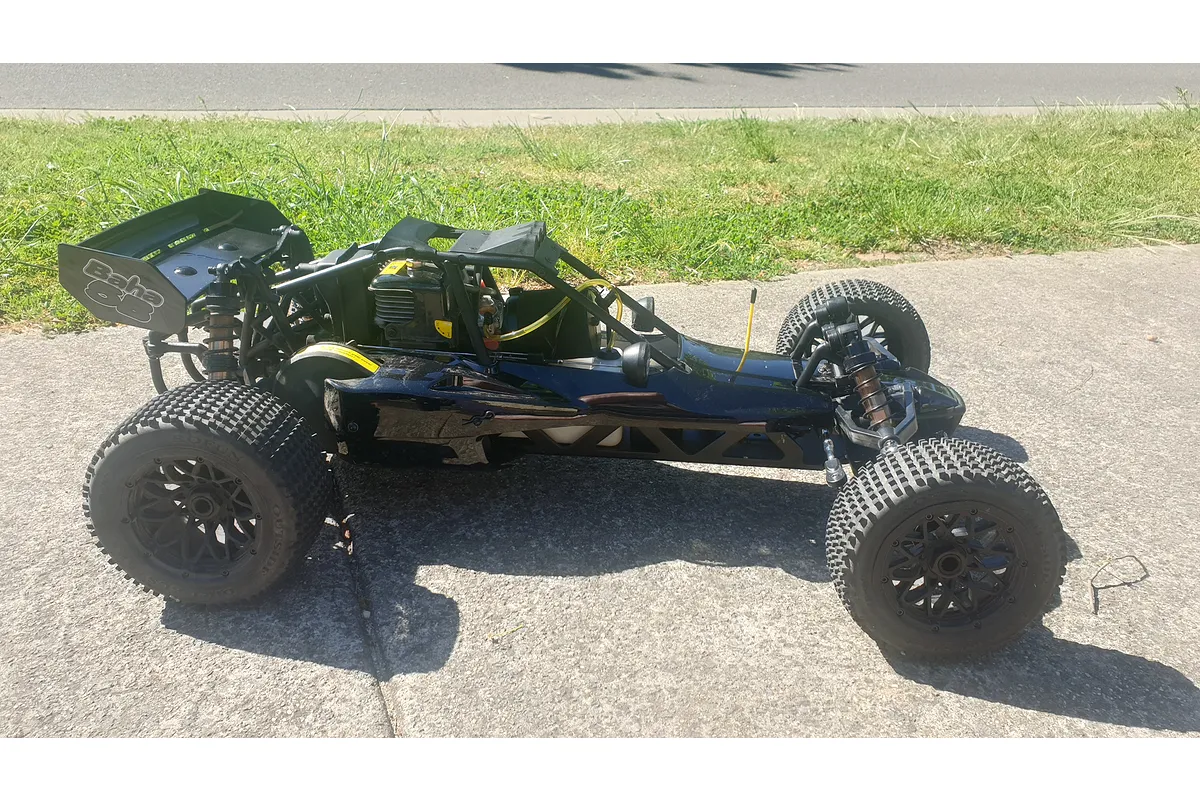 The Baja V2 Sports an aggressive, almost F1 style body shell and new sleek black aluminium chassis. This incredible looking baja is ready to catch the eye of rivals and admirers alike and is sure to impress thanks to its carefully crafted design, as well as providing the required toughness you expect from the 1/5 petrol basher.