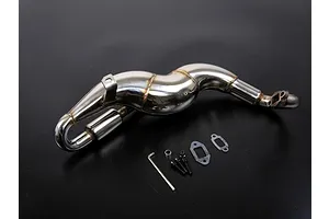 This exhaust pipes bolt holes are 34mm from center to center and an exhaust port size of 17.5mm wide and 12.5mm high.- 29cc Engine