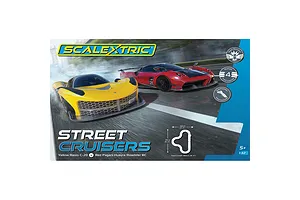 Two of the most iconic film cars ever go head-to-head in this brand-new set from Scalextric! Will you be Michael Knight in Kitt?! Or Doc or Marty McFly in the Back to the Future Time Machine! Whether you are doing 88MPH or chasing down bad guys, red LED lights flashing either car is a guaranteed winner on the big screen, small screen or Scalextric track! This set contains everything you need to race Scalextric, including two cars, power, over 5.3 meters of track including a crossover and side swipe, 2 easy speed limiting hand controllers.