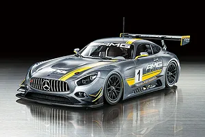 This 1/24 scale model assembly kit recreates the 2018 Mercedes-AMG GT3 race car from the LEON CVSTOS race team. The LEON Racing team has run the AMG GT3 since 2016, and in 2018 the car was sponsored by watchmaker CVSTOS, with an understated black and white livery. Mercedes’ GT3 class car is powered by a monster 6.3-liter V8, and features a graceful, elegant body that utilizes carbon fiber extensively, constructed around an aluminum space frame. The car Itself is a GT3 class spec customer sports car that was converted from the AMG GT road car by the Mercedes-AMG high performance division.