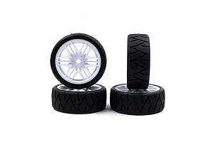 Team Powers 1/10 Touring Car 34s Treaded Radial Tyres w/ White Rims 4Pcs