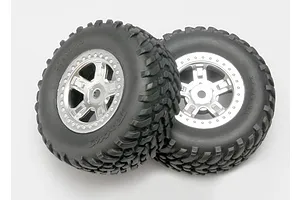 Tires and wheels, assembled, glued (SCT satin chrome wheels, red beadlock style, SCT off-road racing tires, foam inserts) (1 each, right & left)