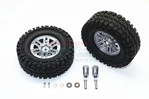 Tires and wheels, assembled, glued (1.9" chrome wheels, Canyon Trail 4.6x1.9" tires) (2)/ center caps (2)/ decal sheet (requires #8255A extended stub axle)
