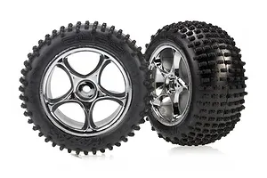 Traxxas 2.2" Bandit Rear Alias Tyres on Tracer Black Chrome Rims - Glued Wheels 2Pcs