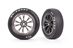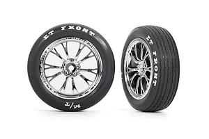 Mickey Thompson skinny front drag tyres come pre-glued to Weld Gloss Black wheels to replicate the legendary look and performance of the real thing. Developed with extensive testing, the tyres' unique compound balances long tyre life with maximum traction.