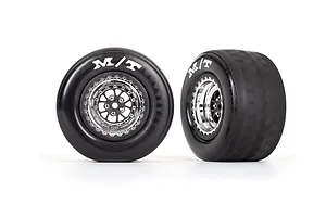 Traxxas 2.2/3.0" Mickey Thompson ET Rear Tyres on Weld Satin Black Chrome Rims - Glued Wheels 2Pcs