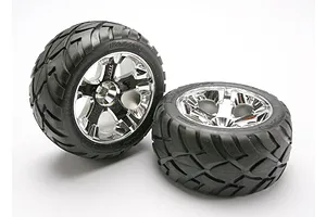 Tires & wheels, assembled, glued (All-Star black chrome wheels, Anaconda® tires, foam inserts) (nitro rear/ electric front) (1 left, 1 right)