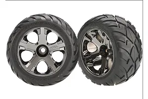 Traxxas 2.8" Front Alias Ribbed Tyres on Chrome Twin-Spoke Rims - Glued Wheels 2Pcs