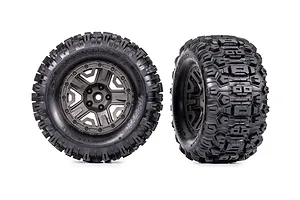 Traxxas 2.8" Sledgehammer Tyres on Black Chrome Rims - Glued Wheels 2Pcs