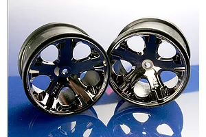 Talon assembled and glued 2.8" tire sets make it easy to maintain peak performance. Talon tires are proven to provide "just-right" grip and handling on a wide variety of surfaces. Soft rubber compound with foam inserts extend grip. The All-Star 5-spoke wheels combine structural strength and futuristic styling. The horizontal bead helps to hold the tire, reducing stress placed on the glue joint by tire expansion. The chrome finish is tough for long-lasting good looks. Available in mirror chrome and black chrome finishes.Specifications