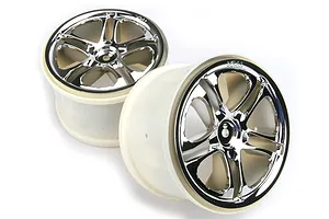 Tires & wheels, assembled, glued (SS (Split-Spoke) chrome wheels, Maxx® Chevron tires, foam inserts) (2) (fits Revo®/T-Maxx®/E-Maxx with 6mm axle and 14mm hex)