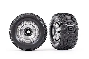 Traxxas 3.8" Sledgehammer Tyres on Black/Grey Modular Rims - Glued Wheels 2Pcs