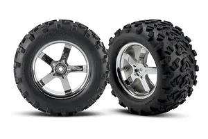 Traxxas 3.8" Talon Tyres on Black Chrome Gemini Rims - Glued Wheels 2Pcs