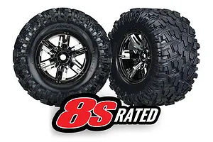 Traxxas 4.0/5.5" 8S X-Maxx AT Tyres on X-Maxx Orange Rims - Glued Wheels 2Pcs