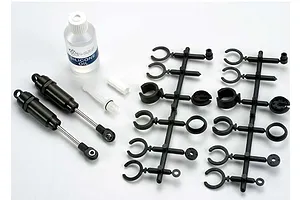 Big Bore shocks provide optimal bump and jump control for your Traxxas model. Hard-anodised aluminium bodies, PTFE-coated shock bores, and titanium nitride coated shafts offer incredible durability and near frictionless operation for ultra-smooth damping and long-lasting performance. The all-inclusive kit contains 30-weight shock oil, ride height spacers, and progressive-rate springs for 2WD Slash models. For other models, use the springs included with your vehicle.