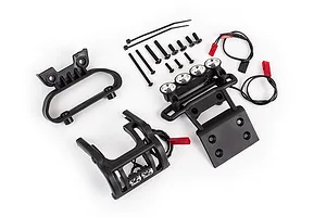 - The beefy chrome front bumper with replica winch and KC fog lights is built Traxxas-tough