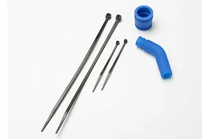Pipe coupler, molded (black)/ exhaust deflecter (rubber, black)/ cable ties, long (2)/ cable ties, short (2)