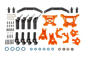 The Extreme Heavy-Duty Upgrade Kit transforms your already-tough Hoss® 4X4, Rustler® 4X4, or Slash® 4X4 into the ultimate bashing machine. Engineered for extreme brushless power systems, the kit includes a full complement of drive line and suspension parts designed to work together as a complete package. Whether you're sending it at the skate park or preparing for a speed run, the Extreme Heavy-Duty Upgrade Kit is battle-hardened to withstand brutal punishment and come back for more.