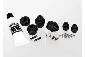 Traxxas Steel Constant Velocity Shafts offer the ultimate in torque handling and efficient power transfer. The outer U-joints are lubricated and sealed by a rubber boot for maximum protection against the elements, and the U-joint pins are held captive so you never have to worry about losing a pin. Gleaming nickel-plated shafts and black silicone boots add a custom look.Parts