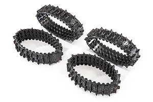 Traxxas all-terrain Traxx provides the most significant traction upgrade you can make to the TRX-4. The TRX-4 already has a go-anywhere attitude and the gear to match, but installing a set of Traxx yields a machine that feels practically unstoppable on virtually any terrain. The enormous contact patch and grippy treads shrug off the deepest mud and float across deep sand. Traxx raises the portal axles even higher (over 16mm!) for increased ground clearance that lets you straddle huge obstacles on the trail.